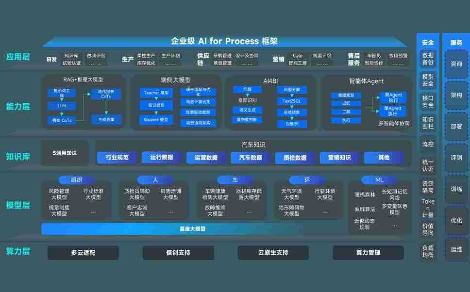 J9娱乐问学智车解决方案是一套基于AI技术的汽车行业智能化系统,,,,覆盖从底层算力到顶层AI应用的全栈方案。。方案由算力层、、、、模型层和应用层组成:算力层,,,,方案支持多种一体机配置,,,,具备云端灵活部署、、、多云适配以及动态优化计算资源的能力;模型层,,,J9娱乐问学平台版提供了企业级AI应用一站式构建与管理平台,,,支持基于后训练强化技术的汽车企业专属模型的训练、、、、评测和运营;应用层,,,,J9娱乐问学DeepSeek版提供包括超级员工、、智能招采、、、智能营销、、、智能客服、、、、AI for BI等一系列解决方案,,可助力汽车行业实现数字化转型,,,让管理更智能、、、、响应更敏捷。。。。